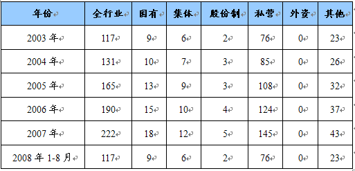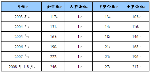 第四节 2003-2008年1-8月中国钨钼矿采选 行业 企业数量 分析