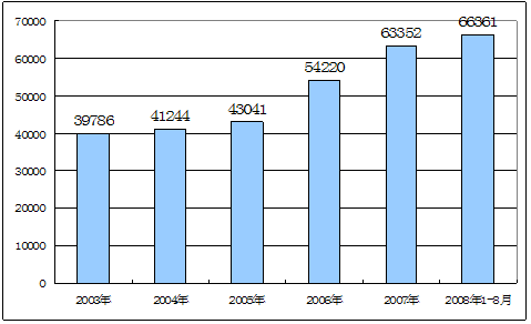 第五节 2003-2008年1-8月中国钨钼矿采选 行业 从业人数 分析