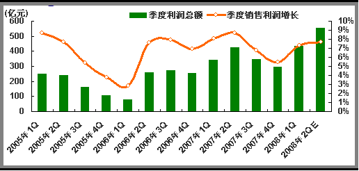 2005-2008年重点大中型钢铁企业按季度实现利润变化