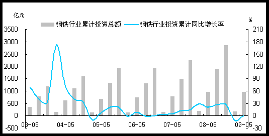 2007年1-12月份钢铁 行业 累计投资增长率变化