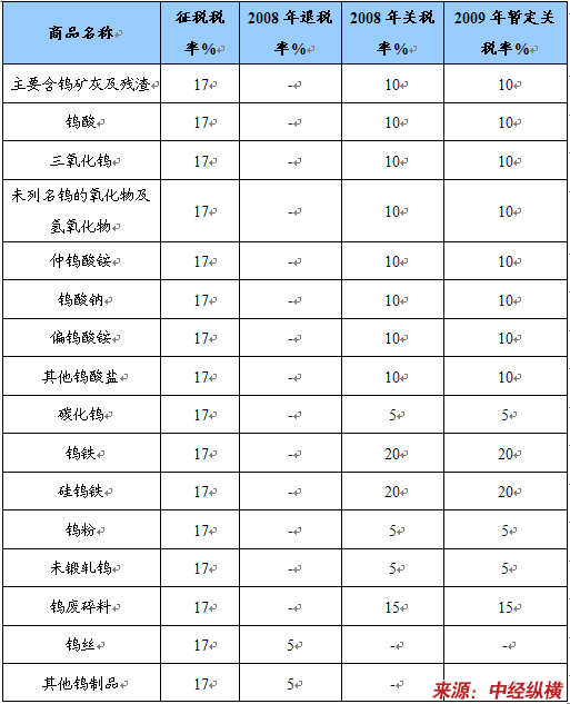 2、钨的2009年暂定关税维持不变