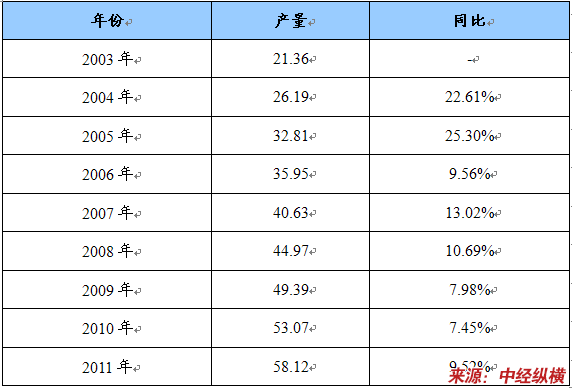 2003-2011年我国软排线(FFC)产量统计表 单位:亿条