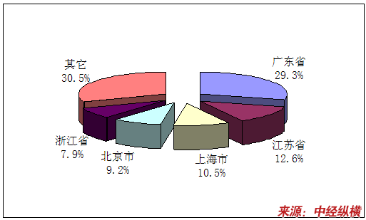 我国软排线(FFC)生产企业主要分布在广东省、江苏省、上海市、北京市、浙江省等地区,这些地区占据整个FFC产量的69.5%。