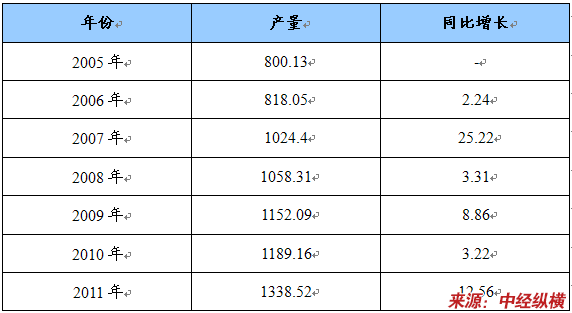 2005-2011年我国PET切片产量及增长 单位:万吨,%