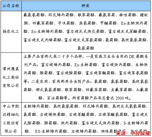 拟除虫菊酯类杀虫剂原药主要生产企业产品种类
