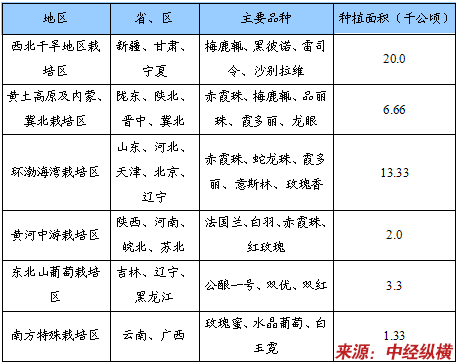 酿酒葡萄在全国26个省、市、自治区都有分布。但主要分布于西北和华北,其中新疆、河北、山东、甘肃、宁夏、北京和天津等7个省区,栽培面积和产量约占全国的80%以上。