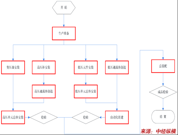 以合纵科技股份有限公司生产的环网柜为例,其具体的生产工艺流程如下图所示: