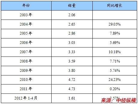 2003-2012年4月中国柴油十六烷值改进剂销量及同比增长