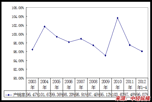 2003-2012年4月中国柴油十六烷值改进剂产销率