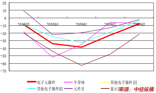 2008Q3 年-2009Q3 单季度电子元器件 行业 营业收入增速