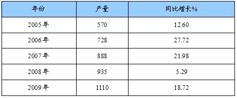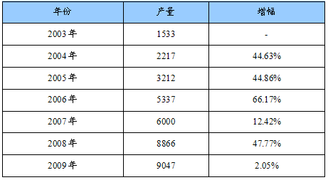 2003-2009年我国汽车电子喇叭产量及同比增长统计表
