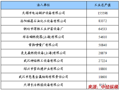 2009年中国燃气高速调温烧嘴主要生产企业产值