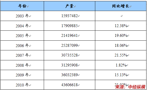 开口剂上游主要原材料(二氧化硅)产量增长统计表 单位:吨