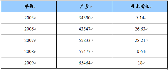 2005-2009年我国橡胶轮胎产量增长情况 单位:万条,%
