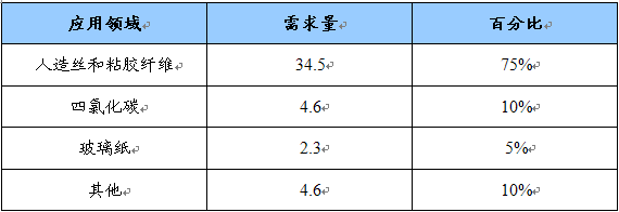 上游主要原材料(二硫化碳)应用领域需求量统计表