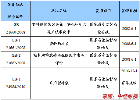 我国现行塑料袋和塑料购物袋相关标准