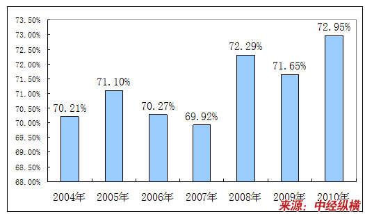 2004-2010年皮肤外用制剂占皮肤用药总金额比例