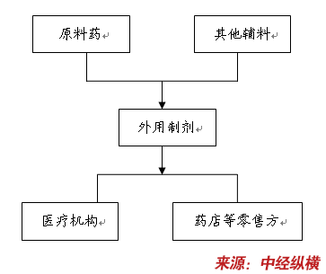 外用制剂上游原料为化学药品原药制造,指供进一步加工药品制剂所需的原料药生产。