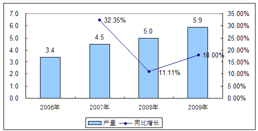 我国木糖醇 行业 经过了八十年代的大发展,到九十年代的大调整,生产厂家从最高峰时的30多家,目前调整到只有十几家,而产量却有很大提高, 2006年为3.4万吨,2007年为4.5万吨,2008年产量达5.0万吨。其中产量较大的公司有:浙江开化华康药业,该公司具有年产3万吨木糖醇的生产能力,但实际产量不多,约在1万吨左右;山东禹城福田药业年产结晶木糖醇约1万吨;山东金缘生物科技公司年产木糖醇约8000吨;河南汤阴豫鑫木糖醇有限公司年产木糖醇6000~7000吨;河北乐亭县奥翔木糖醇公司年产6000吨木糖醇。