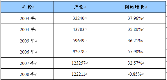 第二节 2003年-2008年 行业 整体生产能力 分析