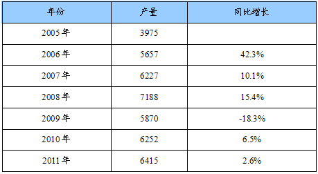 2007-2011年我国液体介质变压器,650kVA<额定容量≤10MVA出口统计