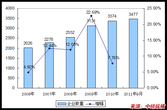 2006-2011年9月输配电开关控制设备制造 行业 企业数量发展状况