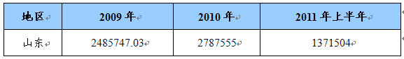 山东省省是我国未涂布印刷书写用纸生产大省,2009-2011年上半年,规模以上企业产量统计数据如下: