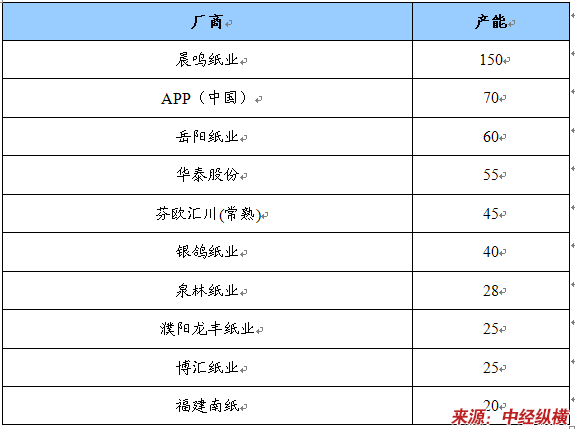 目前我国主要未涂布印刷用纸及书写纸生产厂商的产能如下。这十家厂商的产能占国内总产能的32%。在造纸 行业 的各个子 行业 中,未涂布印刷用纸及书写纸的产业集中度比较低。