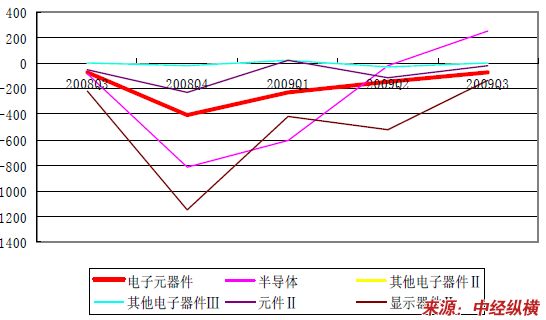 2008Q3 年-2009Q3 单季度电子元器件 行业 净利润增速
