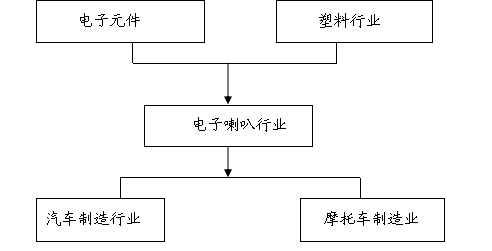 产业链是一个包含价值链、企业链、供需链和空间链四个维度的概念。产业链的上游产业指处在整个产业链的开始端,提供原材料和零部件制造和生产的 行业 。电子喇叭上游原材料以电子元件、塑料等原材料为主,下游主要为汽车、摩托车等机动车制造 行业 。