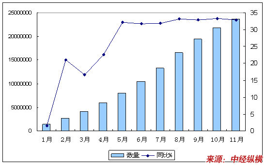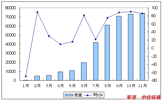 | 1-11月累计 | 数量 | 同比% | 金额 | 同比% |