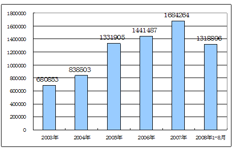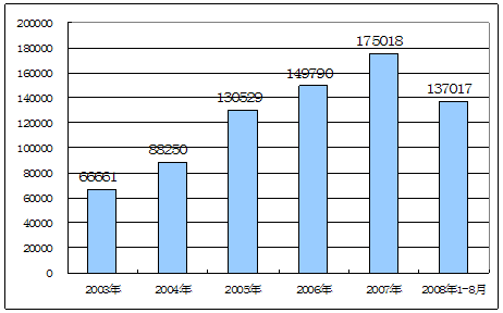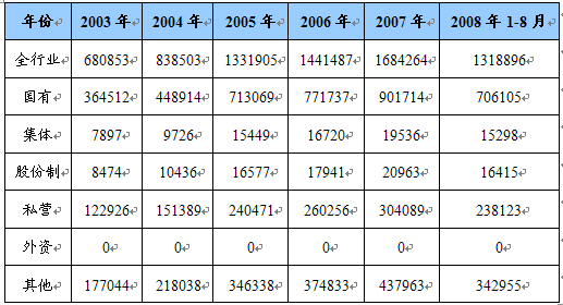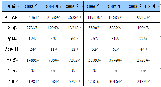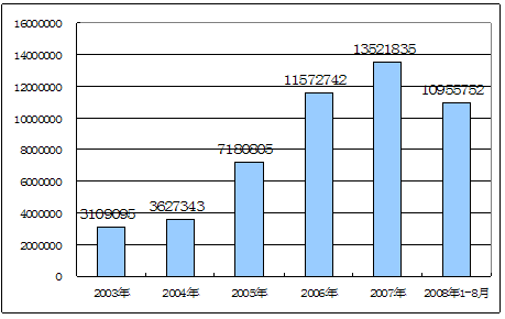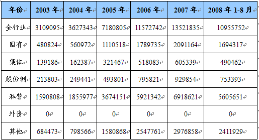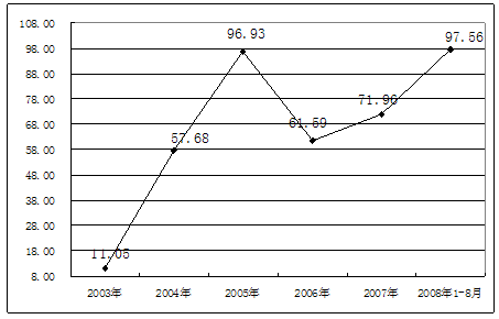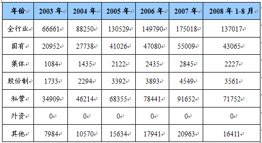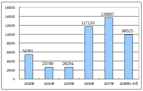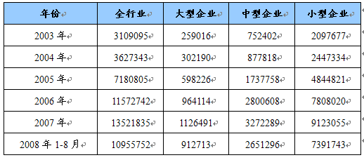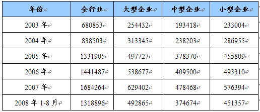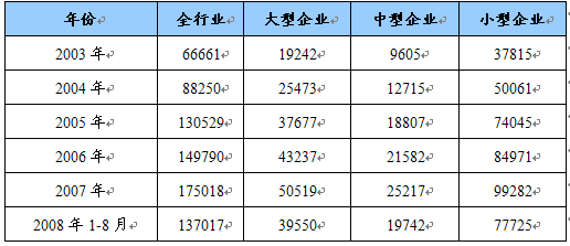一、2003-2008年1-8月 行业 销售成本总额 分析