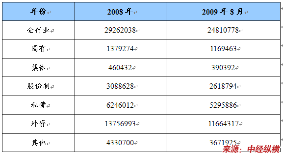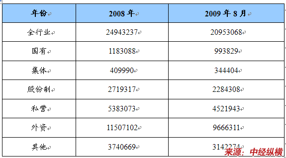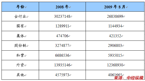 2008-2009年8月不同所有制企业工业总产值比较 单位:千元