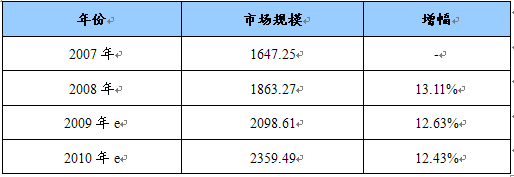2007-2010年我国汽车转向器市场需求规模预测 单位:万套