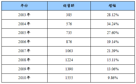 2003-2010年中国N4-乙酰胞嘧啶核苷销售额走势图