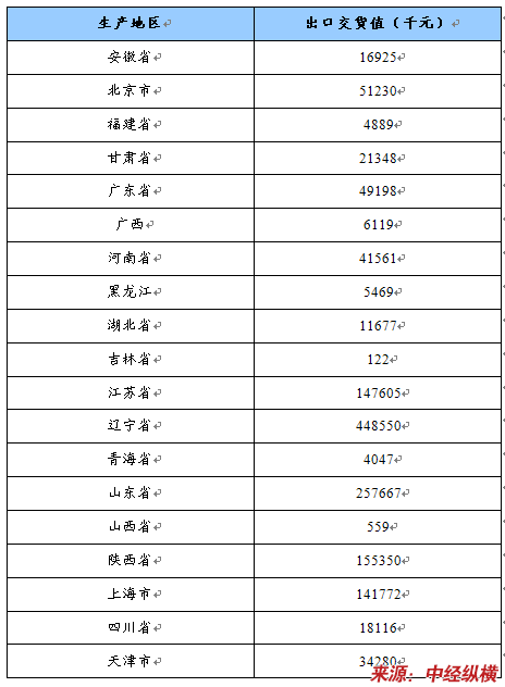 2007出口产品地域分布表