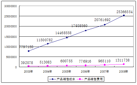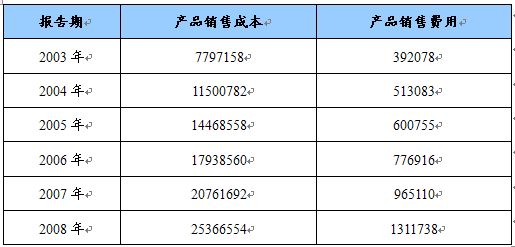 2003-2008年销售成本费用表 单位:千元