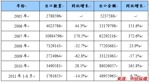 二、2005-2011年1-8月国产品牌葡萄酒出口 分析