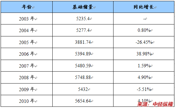 2003-2010年中国石墨矿基础储量 单位:万吨