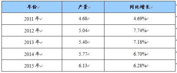 2011-2015年开口剂产量及同比增长预测表 单位:万吨