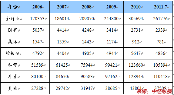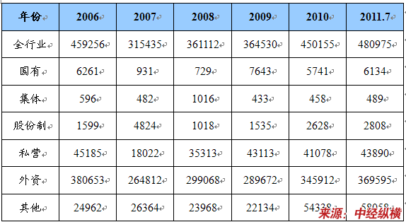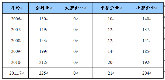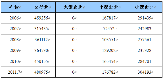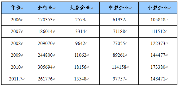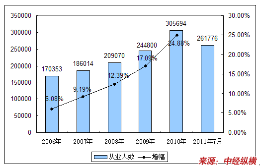 第四节 2006-2011年7月 行业 从业人员数量状况