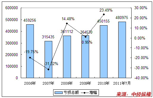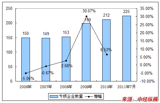 第二节 2006-2011年7月 行业 亏损企业数量状况