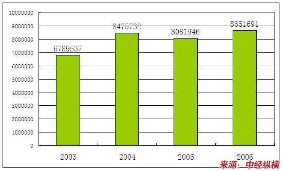 | 2006 | 8651691 | 3571280 | 2760800 | 2319611 |