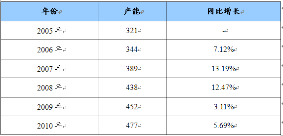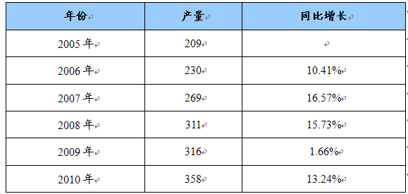 2005-2010年无热再生吸附式压缩空气干燥机产能