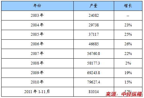 2011年,我国钢铁产能产量继续一如既往地稳步增长,粗钢总产能突破8亿吨大关。2012年正悄然靠近,预计新增高炉仍旧较多,主要品种中长材及冷轧类产品绝对新增产能较多,钢铁 行业 仍难以摆脱来自产能方面的压力和“桎梏”。