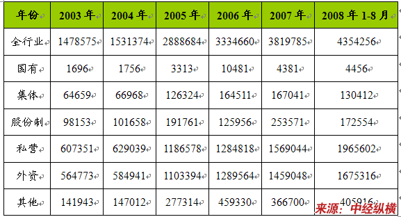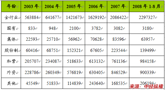 第二节 2003-2008年1-8月 行业 固定资产状况
