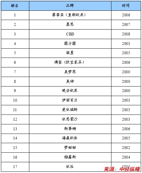 我国软床产业已经形成了众多的知名品牌,在软床产业品牌效应比较显著,知名品牌的产品往往是消费者购买的首选。