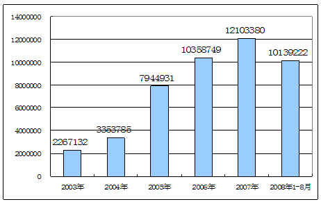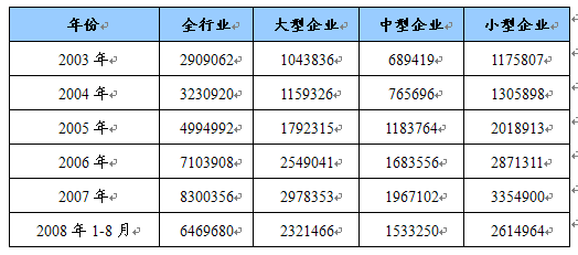 一、2003-2008年1-8月 行业 流动资产总额 分析