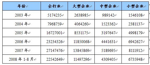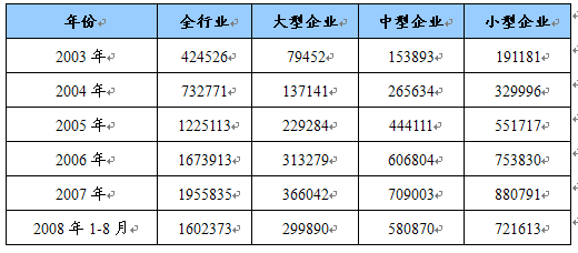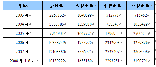 一、2003-2008年1-8月 行业 应收账款总额 分析