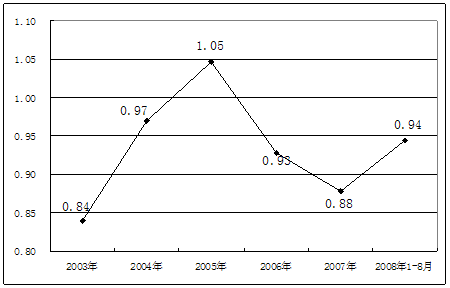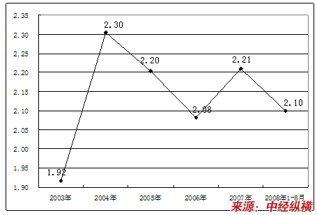 一、2003-2008年1-8月 行业 总资产周转率 分析